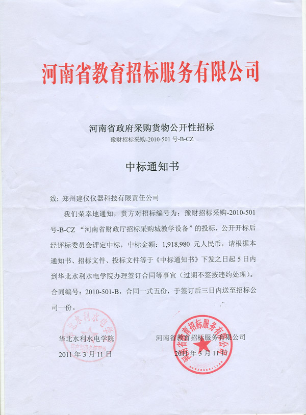 豫財(cái)招標(biāo)采購(gòu)【2010】501-B-CZ號(hào)