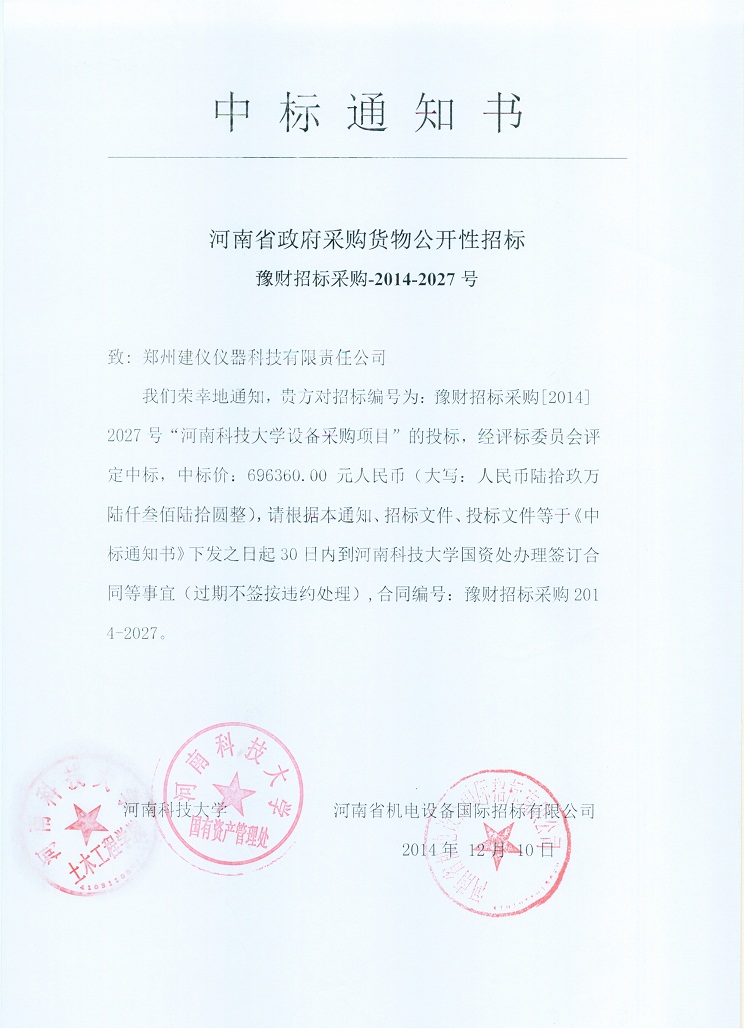 2014-2027中標(biāo)通知書