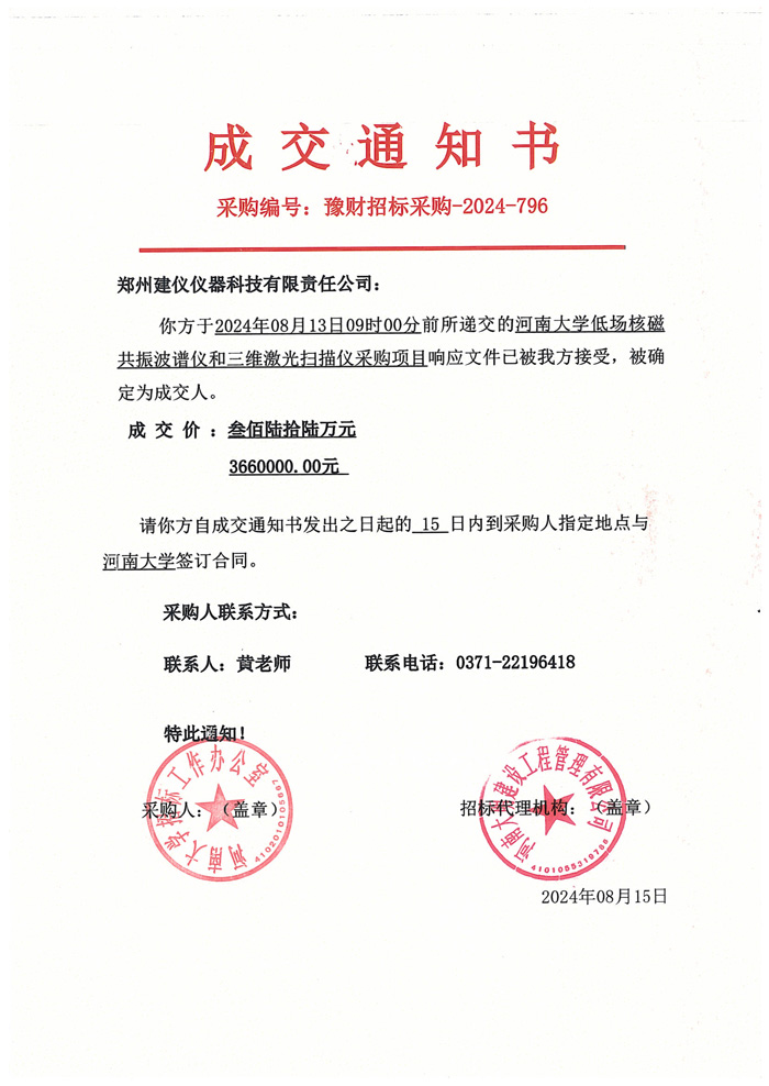2024-796河南大學(xué)低場核磁共振波譜儀和三維激光掃描儀采購項目